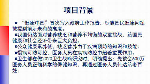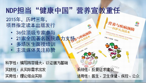 为让项目惠及更多医务工作者,2015年底,NDP项目出版发行了《营养与疾病预防——医护人员读本》,首周销量突破6万册。同时,“营养与疾病预防”微信平台正式开通,让相关知识惠及更多的医护人员和普通民众。