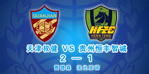 喜获两连胜 权健队2比1战胜贵州恒丰智诚