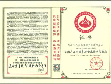 三八妇乐荣获“全国产品和服务质量诚信示范企业”称号