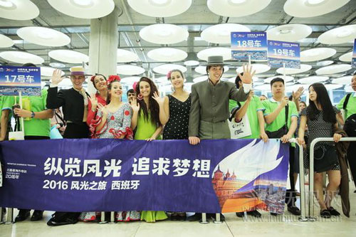 Hola Madrid(你好,马德里)!经过18小时的长途飞行,我们终于抵达!迎接伙伴们的,是身穿西班牙传统民族服装的俊男美女们!