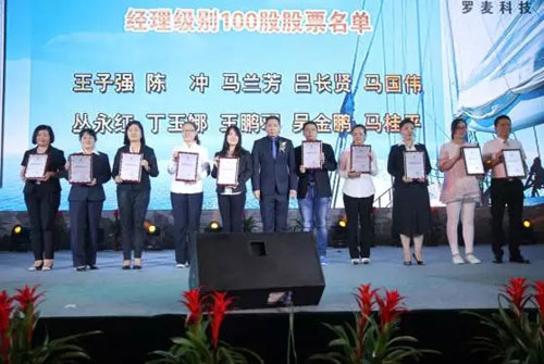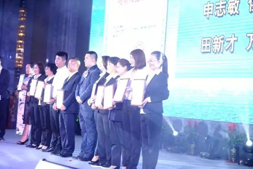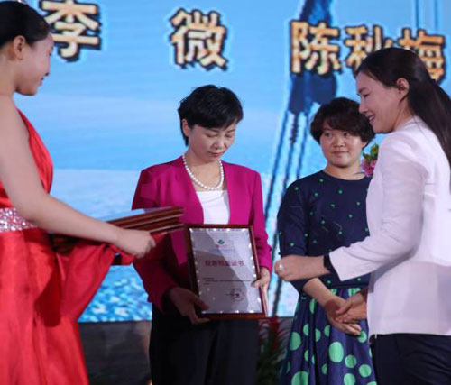 ▲华北大区外事总监朱华莹女士为获得股权的经销商颁发证书并合影留念