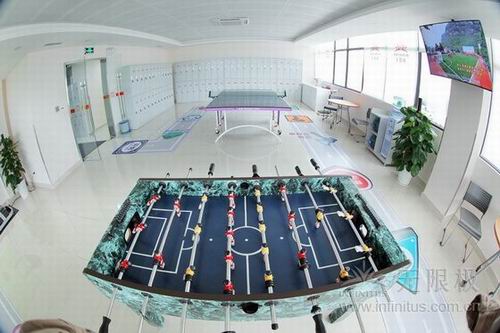 研发人员的业余生活同样丰富多彩。休息区摆放了乒乓球桌、跑步机、桌上足球等各种运动及游乐设施。