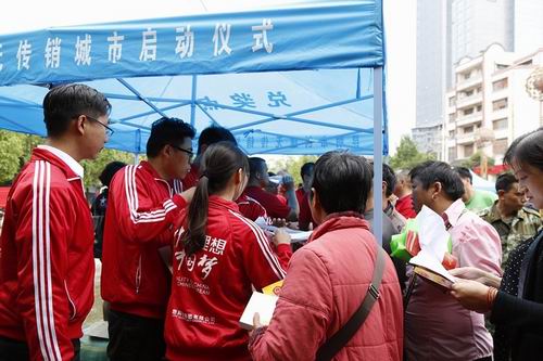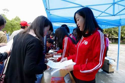 理想科技集团工作人员向过往群众发放反传销宣传资料