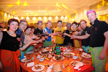 晚宴上,婀娜多姿的特色舞蹈,精彩绝伦的乐队表演,异域风情的鼓乐演奏让气氛高潮迭起。同时,伴随着舞台上精彩演绎,热情的巴厘岛人为大家奉上了一道道异域美食,让全场的三生家人们沉浸在欢乐的氛围中。