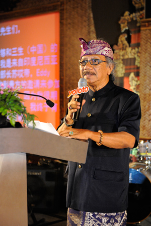 “我感到非常的荣幸能够和三生(中国)的家人们一起在巴厘岛相聚。对我来说,能够收到主办方的邀请来参加晚宴并请我致辞是一个很大的惊喜。借此机会,请接受来自印度尼西亚旅游部的热烈欢迎和问候,并祝大家在巴厘岛享受一次愉快的旅行。”