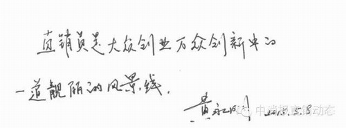 资料图片。图为黄永刚先生为2015年的寻找最美直销员活动题词