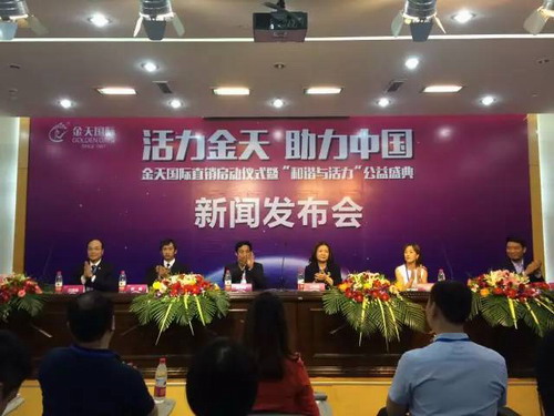 29日,金天国际举行直销启动暨“和谐与活力”公益盛典活动新闻发布会,营运中心总经理冯美玲出席并发言。
