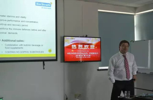 2016年6月27日,来自瑞士的生物科技企业Bio-Strath AG,CEO Mr.David Pestalozii,以及Bio-Strath亚洲商务代表罗健富先生,到访了位于青岛西海岸新区的长青中国总部,Mr.David此行来访意在同长青中国就双方在生物科技产品研发方面进行技术交流。CNI国际集团研发主席周文瑞先生,CNI大中华区总裁白镜亮先生,携长青中国公司高管青岛马克食品总经理李强先生、商学院院长蒋永青先生,以及全国营销中心运营总监郎海倩女士、产品研发副总监崔保金先生热情的接待了Mr.David一行。