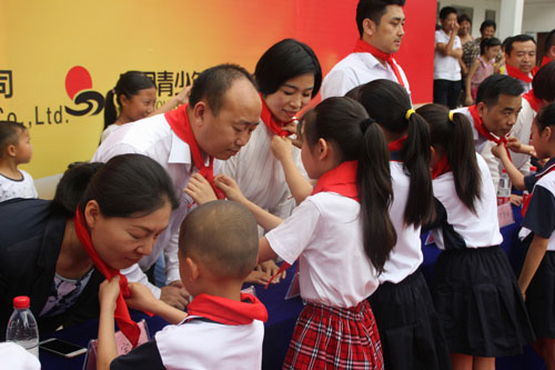 仪式上,少先队员首先为出席仪式的领导和嘉宾佩戴红领巾,表达了孩子们真诚的感激之情。随后,在庄严的国歌声中,活动拉开了序幕。