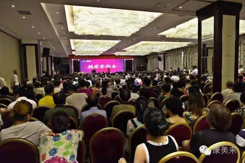 随着康美来教育部总监丁迅丫女士激情开场致辞,答谢会正式开始,会议期间,鼎玉体系领导人刘锋老师作了产品的讲解和分享,让大家更加深入地了解了公司及产品;康美来公司常务副总裁赵巍程先生对“康美来六大优势”作了全面而深刻的精彩演讲,激发了大家的创业热情和梦想。