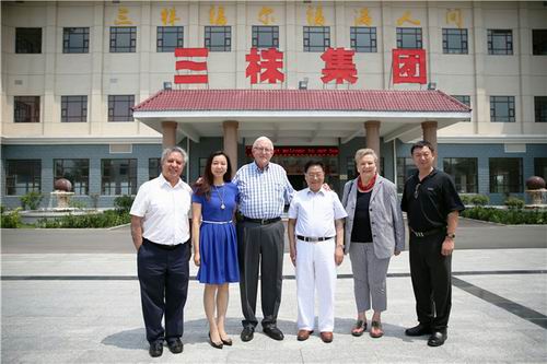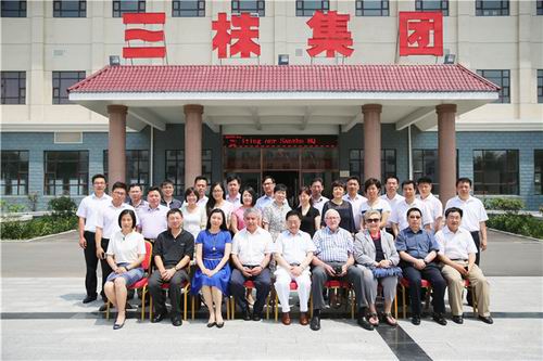 (摩根校长一行与三株同仁在三株福尔营销中心合影留念)
