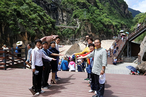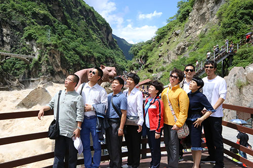 6月29日,学员们结束了丽江之行,整装出发,奔赴此次活动最重要的目的地——美丽的香格里拉。在前往香格里拉的途中,学员们欣赏了世界十大徒步圣地之一——虎跳峡。学员被江中的虎跳石所吸引,巨石犹如孤峰突起,屹然独尊,江流与巨石相互搏击,山轰谷鸣,气势非凡。