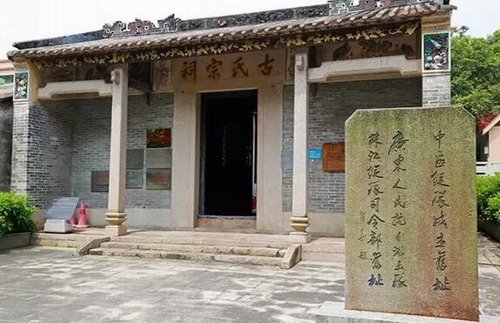 因抗日斗争形势需要,中国共产党在五桂山开辟革命根据地。1945年1月,华南人民抗日游击队珠江纵队在五桂山古氏宗祠正式成立,带领中山人民浴血奋战、英勇抗敌,开展一场保家卫国的正义之战,为夺取革命胜利作出了不可磨灭的贡献。如今,古氏宗祠已修葺一新,祠中陈列了珠江纵队事迹文献及实物,村前矗立十六烈士纪念碑,作为广东中共党史教育基地供后人瞻仰追忆。