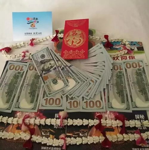 1:席总发放公司为大家准备的美元红包和幸运花环