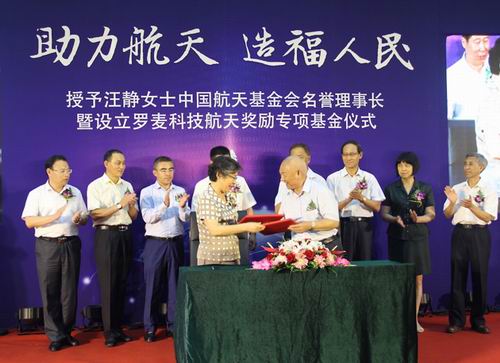 受聘仪式上,汪静董事长发表讲话,“航天事业是奠定我国在国际舞台上的大国地位,提升我国科学技术整体水平的伟大事业,作为非公企业能够和中国航天基金会结为战略合作伙伴是我们的荣幸,能和体现国家实力的伟大事业结合在一起,是我们罗麦人最值得骄傲的地方,所以要感谢中国航天基金会的同志们,过去我和你们是‘亲戚’,今天我成为你们的名誉理事长以后,我们罗麦人和航天基金会就是‘一家人’了,我们罗麦人感到自豪的是,我们现在也是航天的家人,我们也变成宇航人了。在这里要感谢基金会的各位领导对我们的认可,在今后九天揽月的事业中,我们将为中国航天做出更多的努力和贡献!”