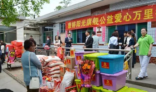 2015年5月14日,“康婷•阳光旗舰系统公益爱心万里行”的全体成员在邢文利理事长的带领下来到山西晋中祁县孔贞兰爱心妈妈孤儿院。此次康婷•阳光旗舰系统向孤儿院捐赠大米20袋、白面20袋、食用油20桶、被子10条、奶粉6箱、整理箱10个、尿不湿、卫生纸、洗衣液等生活用品;王刚先生和司机们捐赠了价值8000元的消毒柜和婴儿用品;刘帅先生捐赠了价值1200元的药品;邢文利理事长、李笃红副理事长、徐辉副理市长、徐晓菲秘书长、单华部长、孙龙先生、岳盈君女士、王刚先生、刘帅先生、尹世选女士、陆玖红女士、唐竟女士、刘宝勇先生、唐百芬女士、孙小惠女士、张玉珍女士、高颖女士每人给孤儿院捐赠1000元现金,郭晓女士捐款2000元,共捐赠2万余元。此次捐赠物资及善款总价值8万余元。随后在孔贞兰爱心妈妈及爱心人士的陪同下,康婷•阳光旗舰系统公益全体成员又看望了当地教堂收养的脑瘫患儿,捐赠生活用品近3000元。