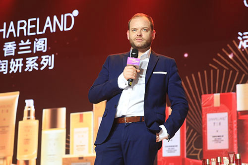 一段极富现代科技动感的3D人屏互动舞蹈呈现在华丽的舞台灯光下,香兰阁珍白、润妍、活肤养颜三个系列19款产品在唯美闪烁的光影、柔和舒缓的音乐里徐徐揭开了面纱。在我们的欢呼声中,主持人邀请到香兰阁三系新品的首席设计师马修·罗塞德·施耐德先生登场,向大家分享他对香兰阁设计理念的理解。原来我们新产品的设计师是从中国古老的建筑、色彩缤纷的绘画以及造型独特的艺术品中得到的灵感,把具有新时代特色的松竹梅手绘图案作为主要元素,用的是中国红、松花黄、珍珠白作标志性原色。