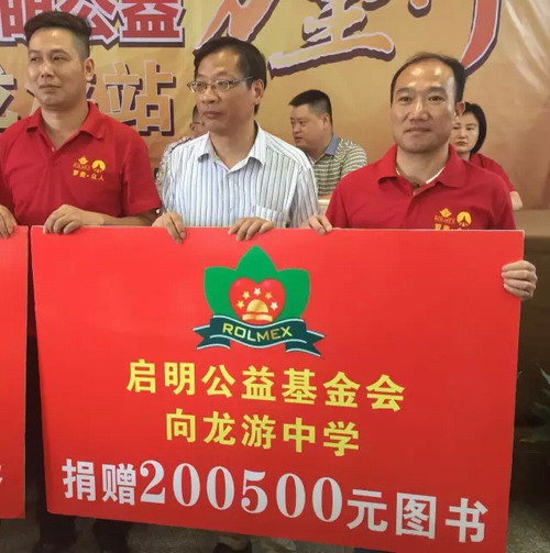 6月24日,捐赠仪式在龙游中学举行。启明公益基金会理事、北京罗麦科技有限公司华东区总监肖涛,龙游县副县长陆民,教育局副局长周华,市监局钱水清,北京罗麦科技有限公司浙江分公司外事经理夏海涛,爱心志愿者代表黄丹,葛迎春,古红娟,赵勇飞等人出席此次活动。