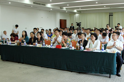 下午2:00,二十晋十强半决赛准时拉开帷幕。由新时代健康产业(集团)有限公司国内直销事业部总经理杨少华、副总经理王宝玉、罗力,以及星级领导人刘洵、王爱芹、荆金梅、邱宁、李雪兰,以及包括分公司经理在内的中层管理者组成的十八名评委团出席了此次比赛,并对本次比赛进行评分和点评。