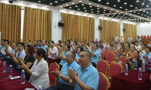 随后王总全面介绍了海之圣13年来发展的收获和经历,从以人为本的企业理念到注重科技研发,以产品为导向的经营理念、专注大健康产业的执着,到低调务实的企业作风,方方面面展现了一个稳健踏实的平台。王总之后从直销板块的定位和目标,对海之圣的未来规划做了详细的阐述,王总着重谈到了产品对直销事业发展的关键性,这既是海之圣多年的传统理念,也是直销儒商的事业导向,伴着12款化妆品即将上市和美国波士顿分公司建立的利好释放,全场家人欢呼雀跃之际,更是对选择海之圣坚定不移。王总在讲话中坦言相告,大健康产业是最具发展潜力的,而直销是最先进的发展模式,二者合二为一,再加之海之圣以产品为导向的直销儒商理念,大家只要努力,就没有不成功的可能。