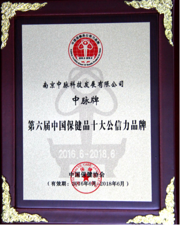 中脉第六次荣登中国保健品十大公信力品牌榜
