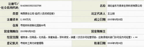湖北省东方泰林生物科技有限公司是湖北省泰林茶叶油有限公司直销板块。据官网资料介绍,湖北省泰林茶叶油有限公司成立于2013年10月11日,注册资本1200万元,位于福银高速枣阳连接线科技孵化园88号,是国内专业从事高端木本植物茶叶籽油研发、生产、销售的企业。