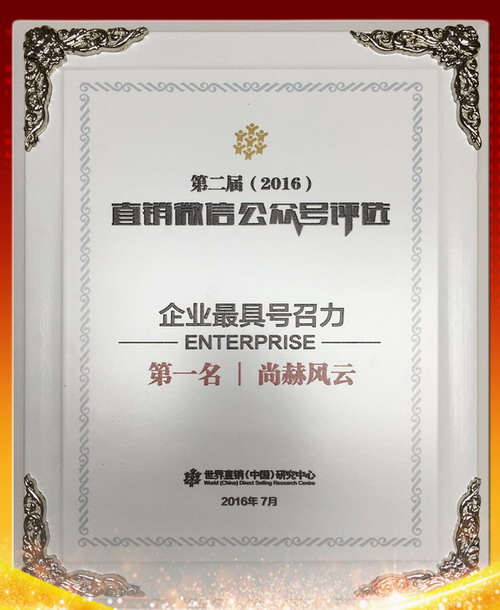 2016,尚赫风云走进第二届直销微信公众号评选,独占鳌头,荣膺企业公众号冠军,并包揽所有奖项,获得“大满贯”。时刻紧跟品牌发展走向,把握行业前进趋势,分享生活热点话题。走进尚赫风云,让您了解一个行业与一群人——直销和直销人。