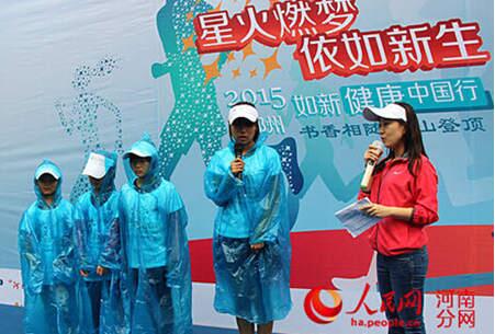 2015年“如意健康中国行”郑州站,300多名健身者冒着大雨,披着雨衣,在嵩山步道上拉开了一条鲜艳的长龙。900多本捐献的书籍,被送到了登封市爱心书屋,活动健康、乐观的精神感动了很多人。