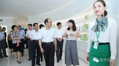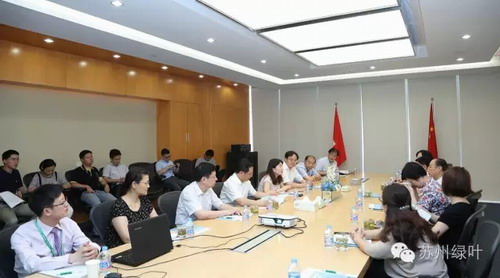 2016年7月20日,苏州市人大常委会陈振一主任一行莅临绿叶视察调研并指导工作。参与本次调研工作的市人大领导有:市人大常委会主任陈振一、副主任周玉龙、农经工委主任谢国珍等;参与本次调研工作的市国土资源局领导有:市国土资源局局长吴维群、副局长张焱等;陪同调研的市高新区领导有:高新区管委会主任周旭东、副主任邢文龙以及高新区浒关镇党委书记王永刚等。