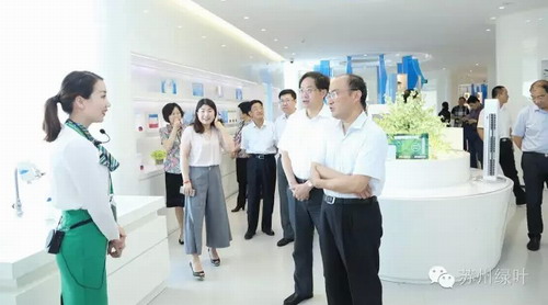 在绿叶集团高级副总裁韩静女士的陪同下,陈振一主任一行参观了绿叶集团企业文化厅、产品展示厅和员工办公区等处,对绿叶先进的科研技术、高端的产品形象和专业的市场营销给予了充分的肯定。