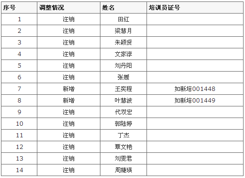 2016年7月21日,商务部直销行业管理信息系统公布如新(中国)日用保健品有限公司直销培训员备案信息。如新本次新增直销培训员2人,注销12人。详细讯息如下: