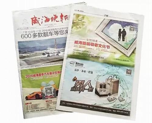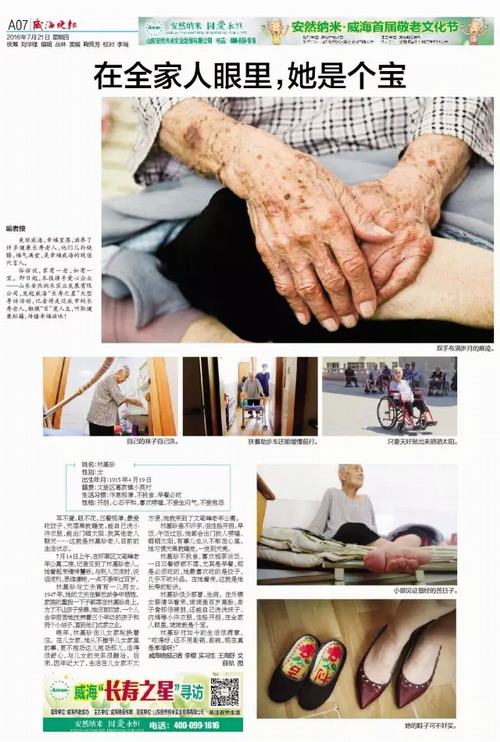 威海晚报整版报道安然纳米冠名的敬老文化节