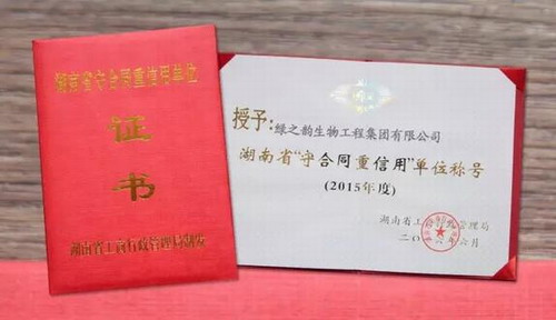 绿之韵再获湖南“守合同重信用单位”荣誉称号