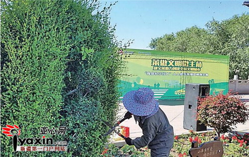 感言:一位园艺师正在修剪树枝,城市的美,少不了他们。