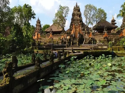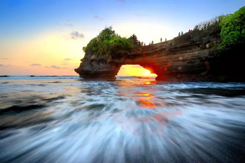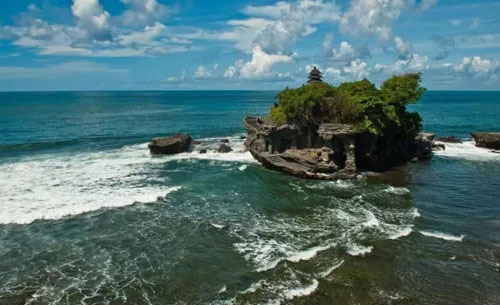 海神庙是巴厘岛最重要的海边庙宇之一,始建于16世纪,祭祀海神。该庙坐落在海边一块巨大的岩石上,每逢潮涨之时,岩石被海水包围,整座寺庙与陆地隔绝,孤零零地矗立在海水中;只在落潮时才与陆地相连。对岸有小亭可以眺望日落景色,成为巴厘岛的一大圣景。