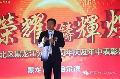 同时,深圳荣格科技集团教育培训部总监张瑞林也受邀为盛典致辞。张总肯定了过去的2015年里荣格家人所取得骄人的成绩,对2016年上半年东北区域家人们的傲人成果表示祝贺,并鼓励大家要继续追随公司的节奏与脉搏,一同在未来的里程荣耀前行。