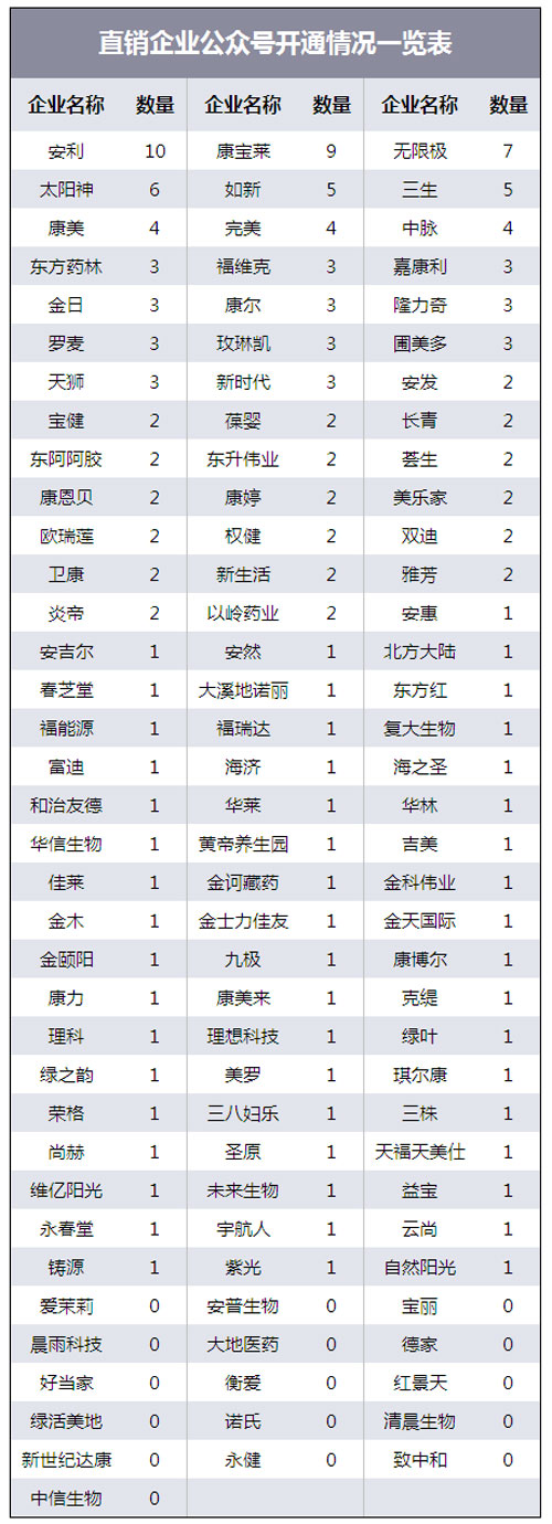 直销企业官方公众号数量达175个
