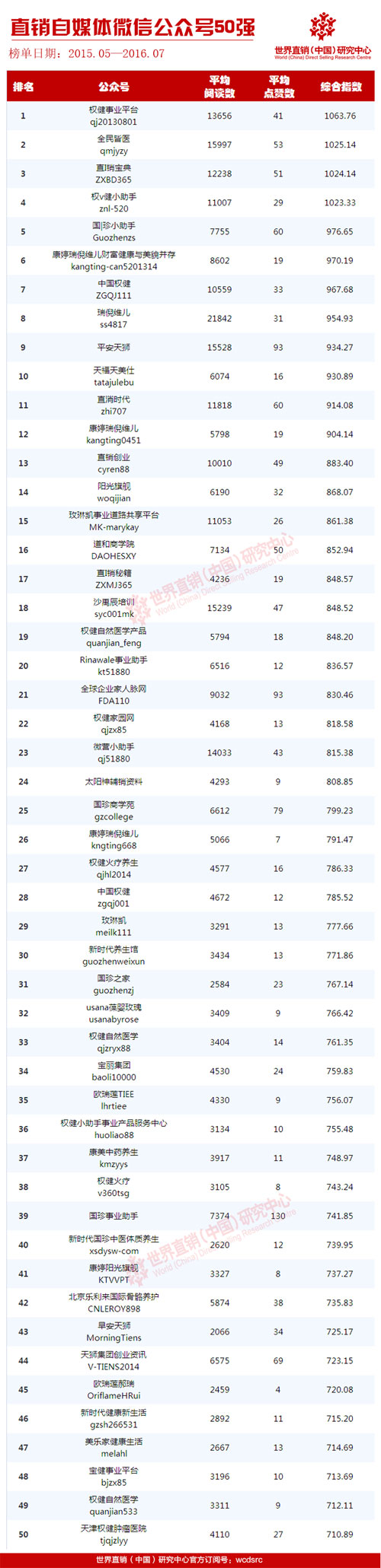 重磅发布|中国直销微信公众号百强榜火热出炉