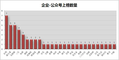 在百强榜之企业公号50强榜单中,安利、康宝莱、无限极、三生、如新、康婷、玫琳凯、欧瑞莲、天狮、安发、宝健、葆婴、海济、华莱、康美、克缇、罗麦、美乐家、权健、三八妇乐、尚赫、太阳神、完美、新生活、新时代、雅芳、中脉共27家企业的50个公众号上榜。其中安利上榜的公众号最多,达7个,无限极、康宝莱次之,均为5个。
