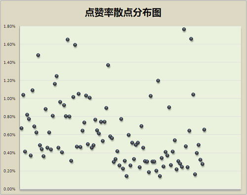 从点赞率分布情况来看,一个优秀公众号点赞率一般在0.5%-1%之间;点赞率超过1%,则是精英。