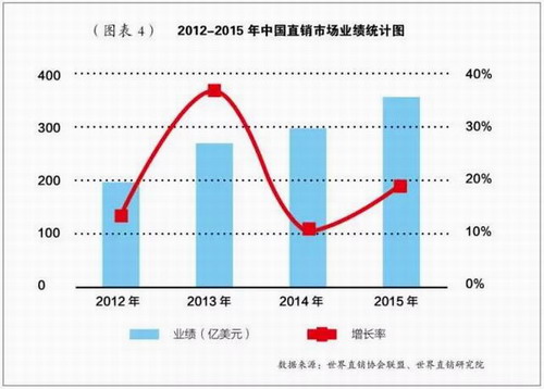 近4年来,中国直销业绩一直保持着10%以上的速度增长,年均复合增长率达22.5%。保守估计,2016年中国直销的业绩将到达400亿美元以上。