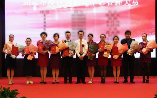 会议上,云南分公司为持续运营十周年的服务中心颁发牌匾,鼓励他们再接再厉,服务当地市场。优质的服务来自于高素质的服务人员,分公司评选出十位“2016年度服务中心优秀管理人员”进行表彰,娄经理为获奖人员颁发荣誉证书和纪念品。