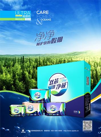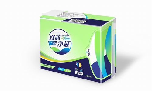 纳米负离子双芯净极卫生巾拥有蓝、白2层自净芯。
