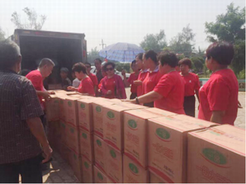 最后,太阳神伙伴们来到了灾情最为严重的邯郸涉县。当天,邯郸市工商管理部门、食药监管部门与太阳神河北分公司及胜和团队伙伴一起,顶着烈日为灾区输送了大批的救急物资,受到了当地群众的一致好评。