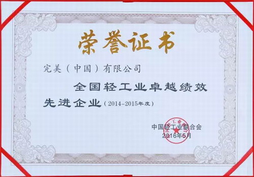 完美获全国轻工业卓越绩效先进企业多项殊荣