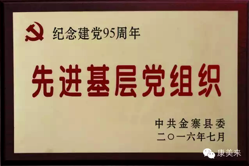 值此建党95周年之际,中共金寨县委授予康美来党支部“先进基层党组织”荣誉称号。