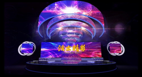 本次舞台酷炫的重头戏,就是三环联动多媒体装置。这种高科技装置因其新奇绚烂的舞台效果,很受娱乐圈追捧,曾在2015中韩歌会、2016林俊杰演唱会、2016张信哲演唱会等场合上使用,但运用到企业年会上却是开创了先河。