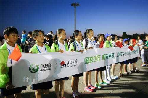 8月16日,2016年“国珍少年 航天未来”国珍希望小学夏令营活动的第二天,同学们一大早就整队出发,来到天安门广场,等候参加升旗仪式。大家着装统一、手持红旗,排着整齐的队列等待着神圣而庄严的升旗仪式的到来。当一轮红日划破地平线的那一刻,天安门广场上响起震撼每一个炎黄子孙的《义勇军进行曲》,五星红旗冉冉升起,同学们怀着激动的心情凝视国旗并向国旗行少先队礼。