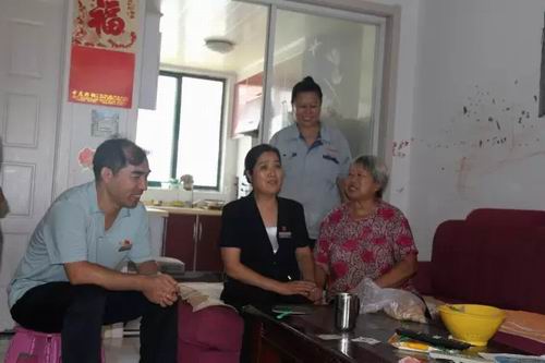 生产支部书记刘兴敏女士拉着老人的手谈心
