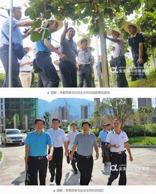 当天上午,黎锦祥副总裁陪同金平考察团及浙江大学团队全面参观考察了安发(古田)生态科技园。黎总介绍生态科技园主要目的是示范作用, 主要功能有三:1.以新西兰猕猴桃为首的品种选育和栽培技术的推广;2.现代生态、立体、林下、休闲观光农业的模式实验;3. 原料资源GAP种植和科研基地。我司技术人员对从新西兰引入的不同品种猕猴桃的市场现状及生态园区培育情况进行了详细解说,同时也介绍了灵芝、绞股蓝等林下作物的生长情况及市场行情。考察团肯定了生态园的发展模式及社会贡献,并希望能将其中的猕猴桃、绞股蓝等品种引入金平,以实现金平农民的脱贫致富。